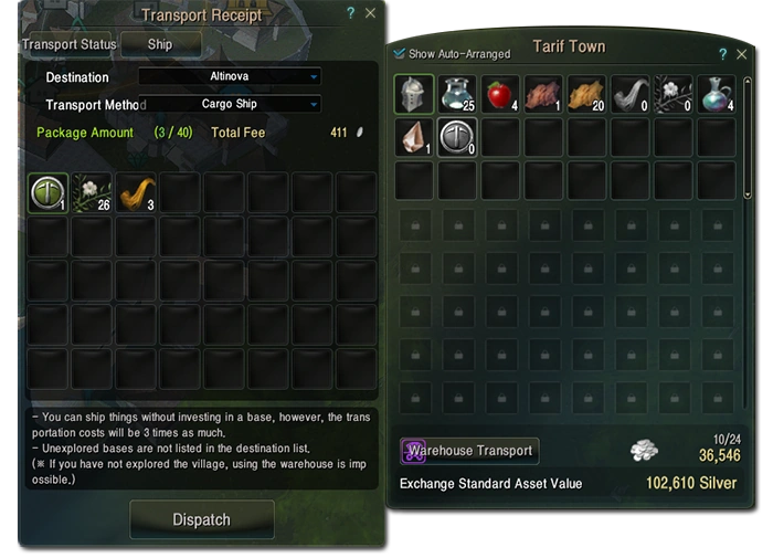 You can keep track of your progress by looking for a gift icon on your world map, and it will show you exactly where your items are during the transport process. The transport will happen automatically but the shipment needs to be claimed at the destination via the storage keeper or storage box. Deliveries can't be claimed if the destination warehouse is full.