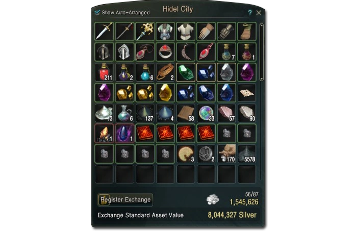 Any item except a bound item can be deposited into the Warehouse, and the Warehouse has no weight limit. Currency can also be deposited into the Warehouse, and can be used to purchase from vendors, the Auction House or pay for transport between Warehouses of connected nodes.